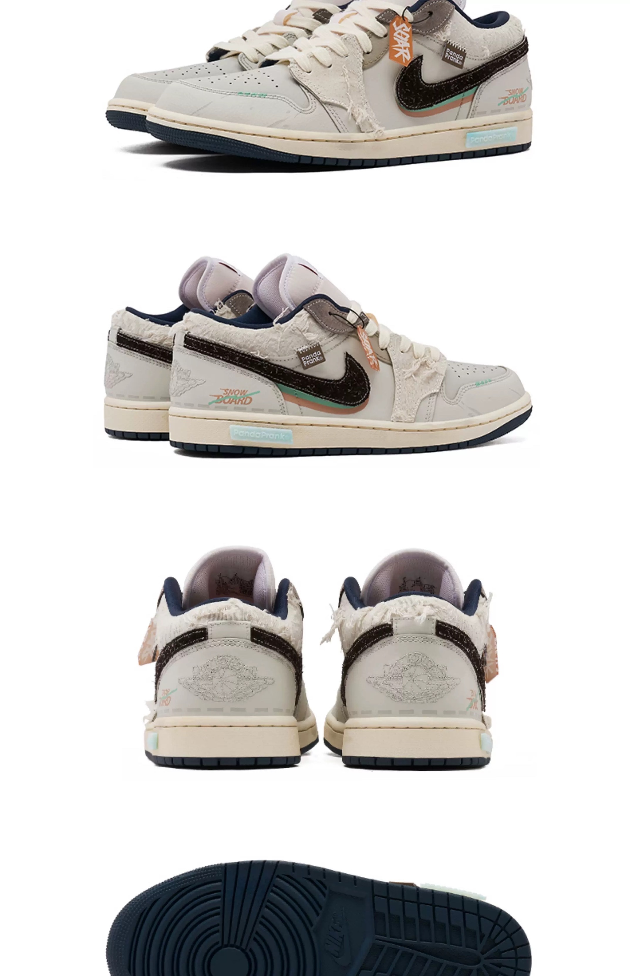 【HAO NICE 】熊貓惡作劇系列 ❗️配合FAKEBUSTERS驗鞋 ❗️ Air Jordan 1 雪徑春蹤系列 寒境訂製 低筒戶外休閒時尚潮流籃球鞋🔥